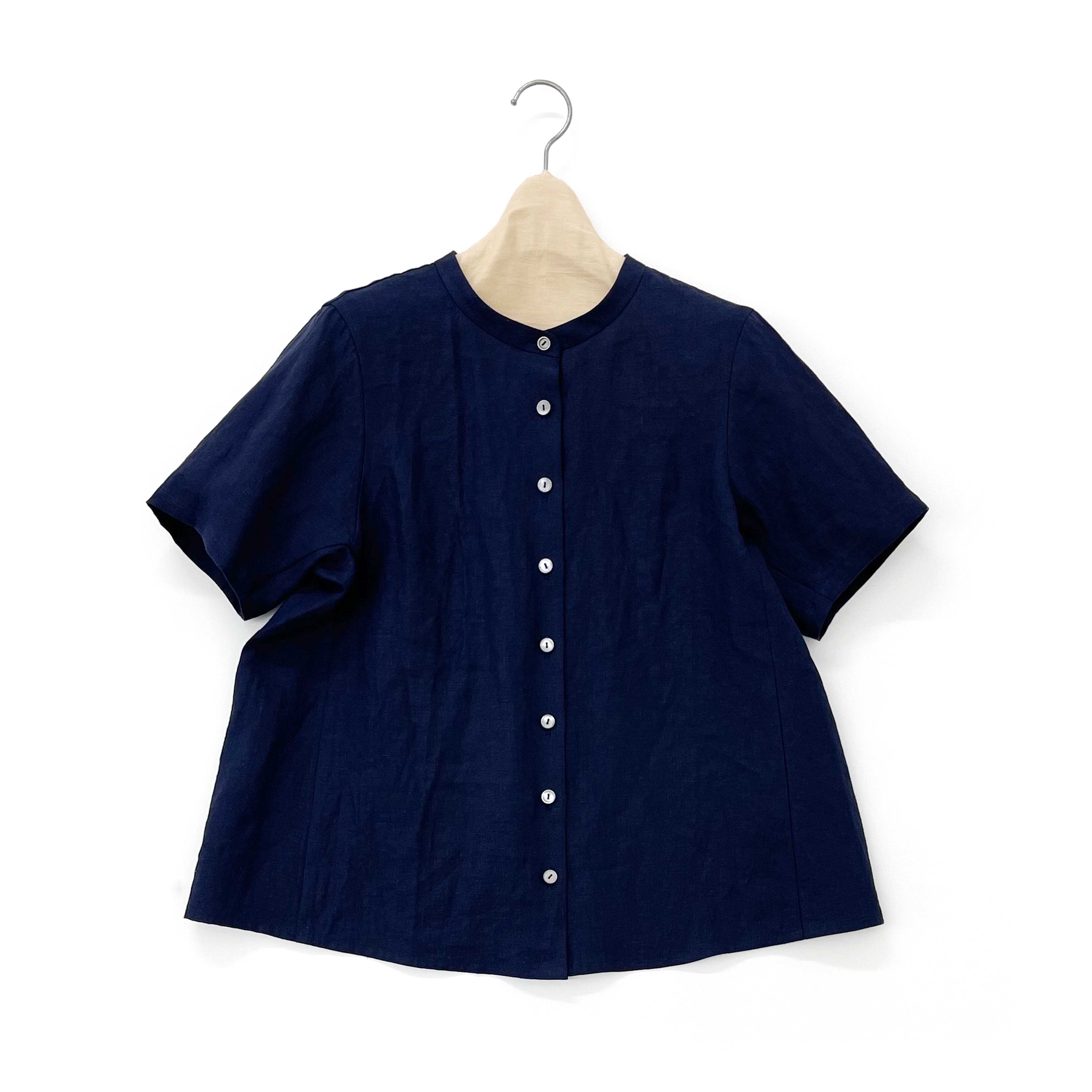 北フランス産リネン 半袖ブラウス【ネイビー】