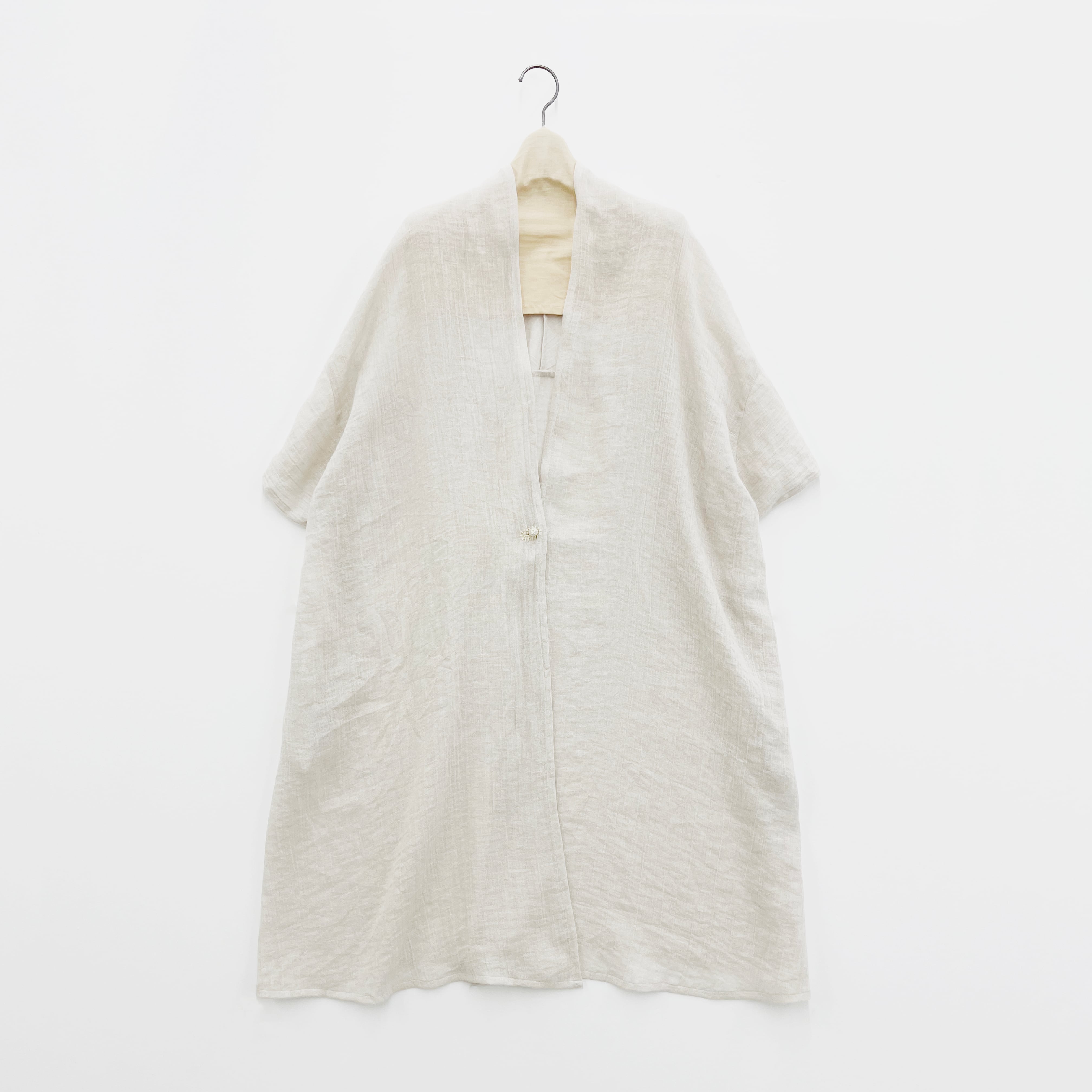 600年の歴史を持つ滋賀県/湖東産のリネンでさらっと羽織れるローブを製作しました。ふんわりとシボ感のある生地です。