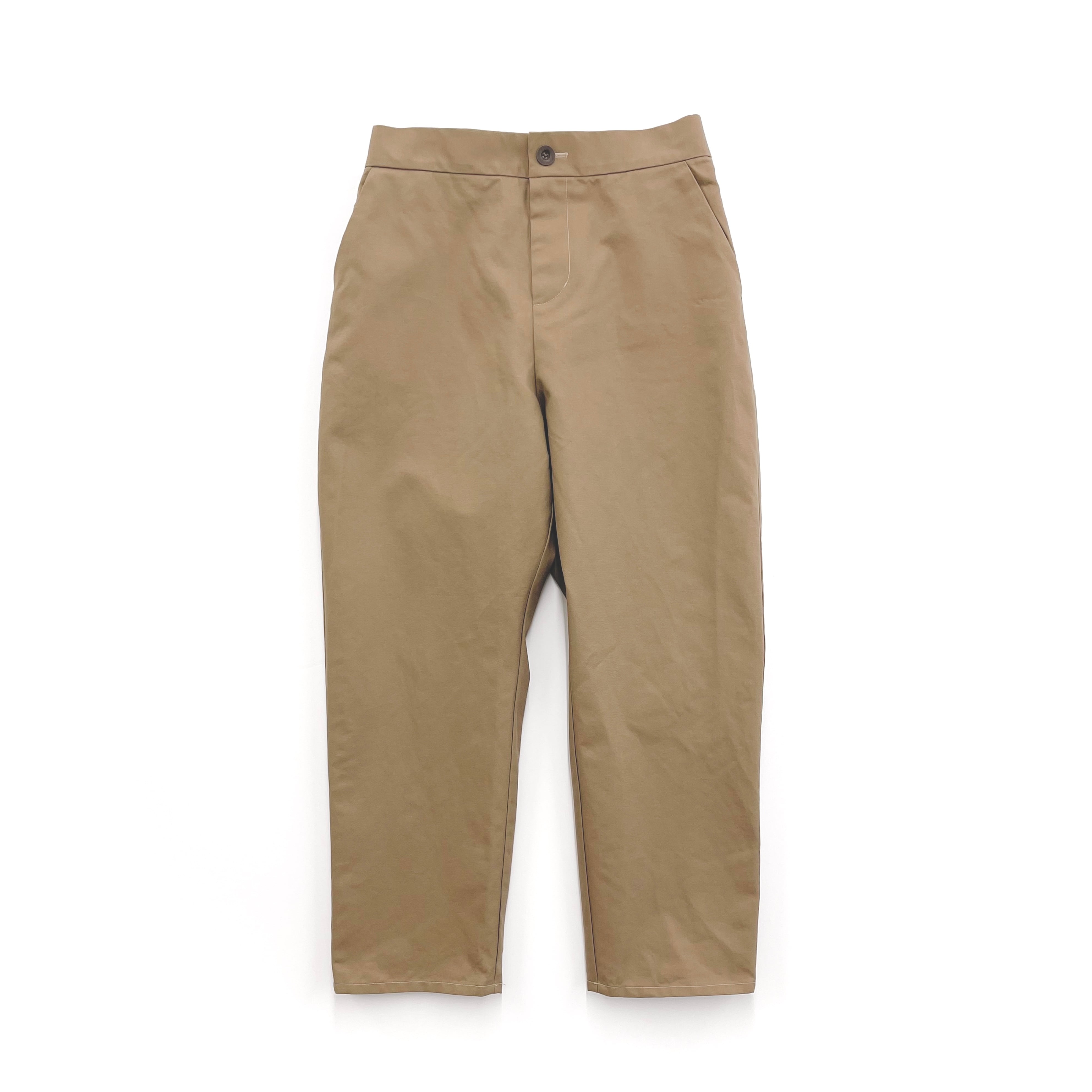 程よいハリとクラシック感のあるコットンツイルを使用した、ゆったりテーパードパンツ。