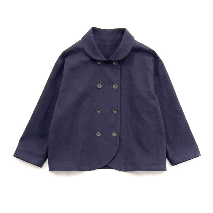 深いネイビーカラーはどんなコーディネートにも馴染み、季節の変わり目のライトアウターとして重宝します。